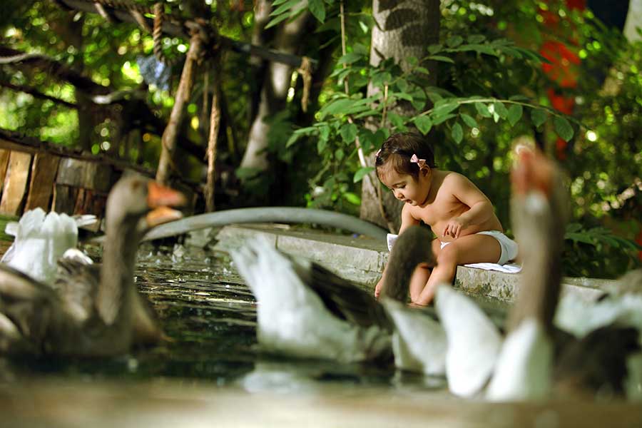 قرار دادن خورشید پشت سوژه نه تنها به جلوگیری از سایههای خشن روی چهره کمک میکند، بلکه باعث شده سوژه راحتتر به دوربین نگاه کند، زیرا نور مستقیم به چشمان او برخورد نمیکند. این تکنیک به ایجاد یک پسزمینه زیبا کمک میکند. البته باید مراقب نور پراکنده یا شعلهور شدن لنز باشید زیرا ممکن است تصویر شما را ابری کند. استفاده از هود لنز و یا قرار دادن خود در سایه به کاهش این مشکل کمک میکند. با این تکنیک از نور خورشید برای ایجاد عکسهایی با جلوههای هنری استفاده کنید.